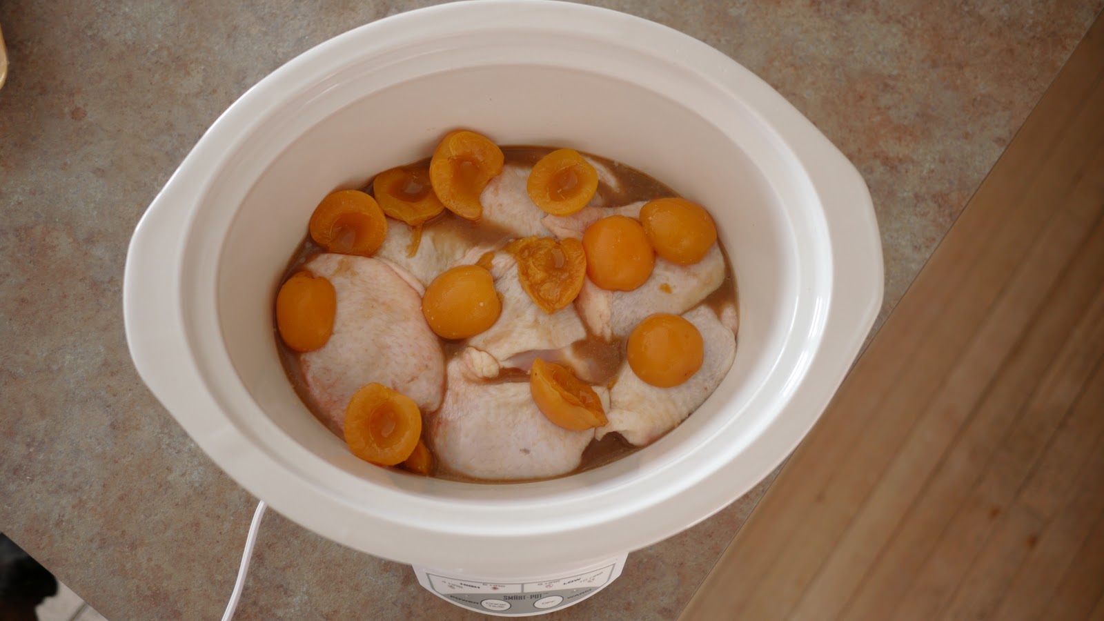 Unfortunately, I skimmed over the recipe before heading out to the grocery store. I should have paid closer attention because the recipe calls for apricot preserves, and I picked up canned apricots. But we just went with it.